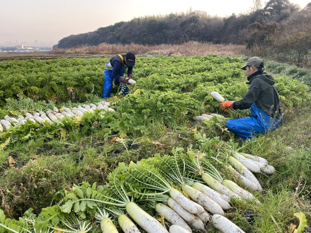 大根は蕪に比べて大きく重量もあるので、収穫にはかなりの体力を使います。